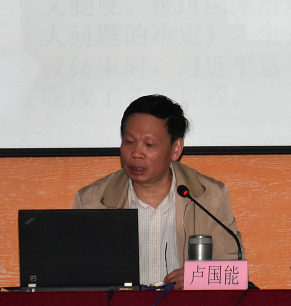 接著,盧國能教授從“為什么要堅定中國特色社會主義制度自信”“中國特色社會主義制度還需不斷完善和發展”“加強黨的領導、確保各項目標任務全面落實到位”三個方面闡述了《中共中央關于堅持和完善中國特色社會主義制度、推進國家治理體系和治理能力現代化若干重大問題的決定》的深刻內涵。