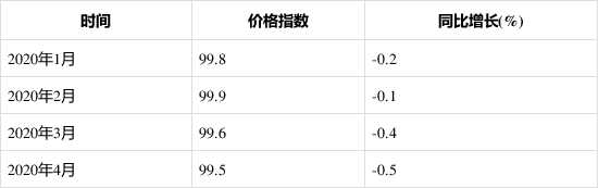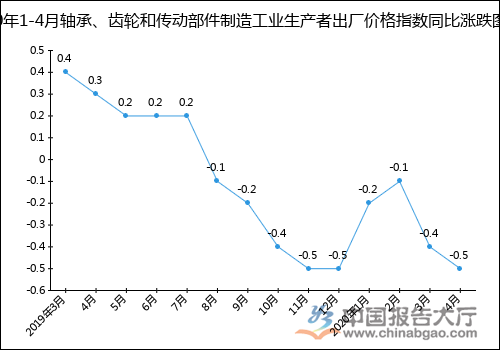 2020年1-4月軸承、齒輪和傳動(dòng)部件制造工業(yè)生產(chǎn)者出廠價(jià)格指數(shù)同比漲跌圖(%)